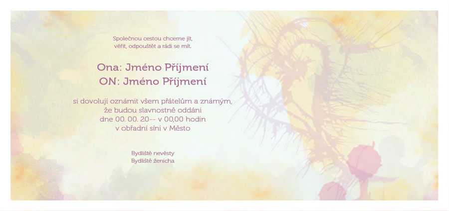 _____ Vám s radostí v sdrci oznamují, že budou oddáni dne _____ v ____ hodin v Obřadní síni v _____.